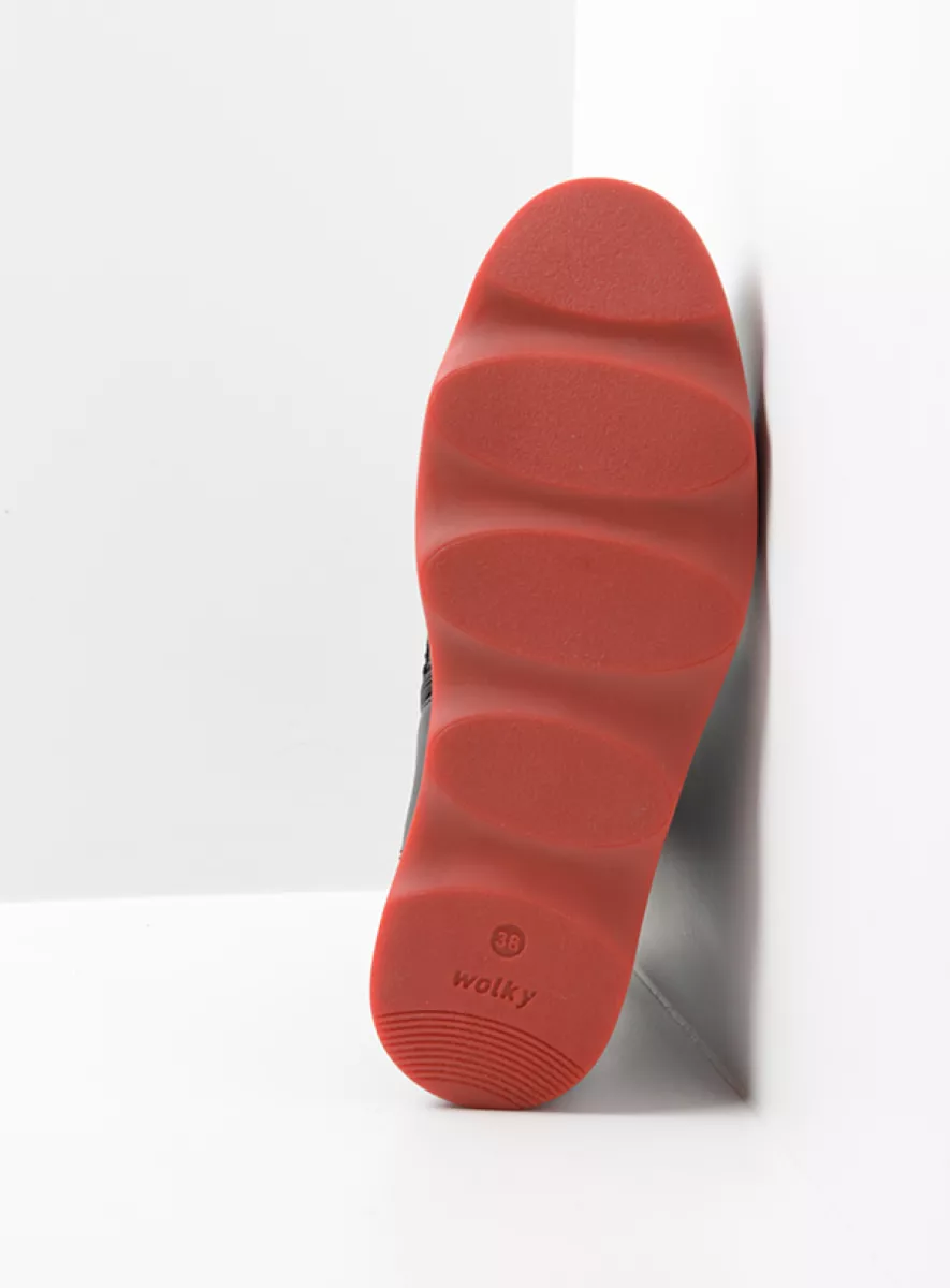 Wolky’s Akita is a water resistant lace-up which will definitely be noticed. The striking wavy sole gives the shoe a playful look. As you come to expect from Wolky, this sole has a function – it stabilises the foot and provides extra cushioning. You can feel this with every step. We have incorporated an extra layer of foam under the footbed, making the shoe even softer. Adjust the lace accordingly the first time and after that you only need to use the zipper on the inside. In no time you have the Akita on or off. Ready for a walk?
