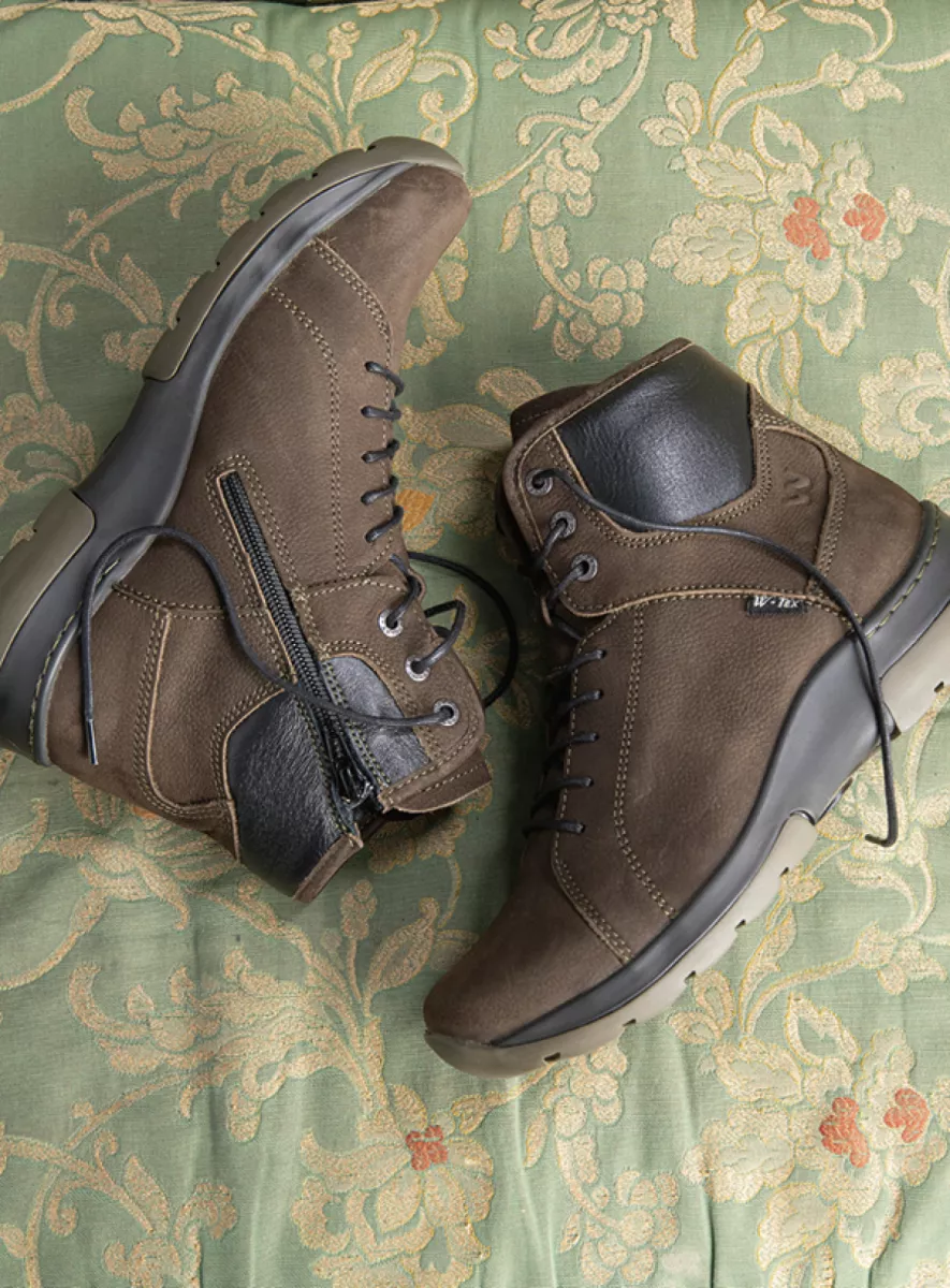 The sporty Ambient is a favorite from the Wolky collection. We can see why! The lace-up boot is water-resistant and extra comfortable due to the two-component sole. The black midsole is made of PU, which makes the shoe incredibly lightweight, and the tread is made of TR. This makes the shoe cushioning and durable. The Ambient is easy to take on and off thanks to the lace and zipper combination. This sporty lace-up boot provides hours of walking pleasure!