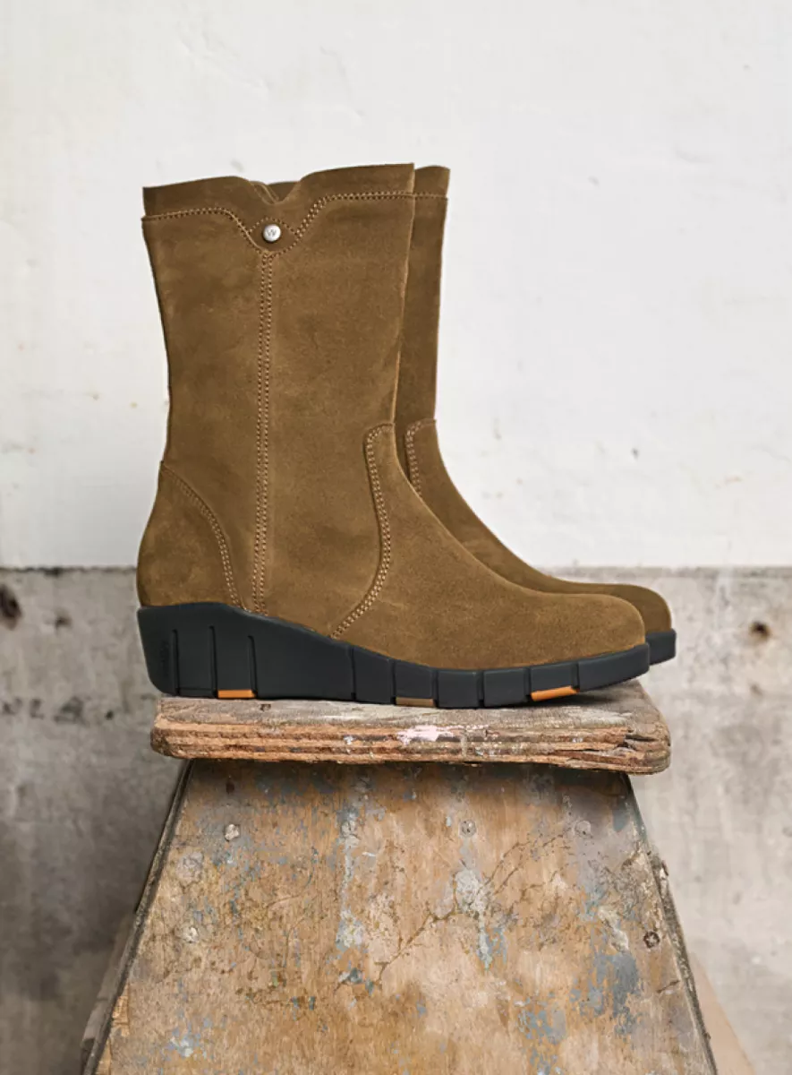 We are completely in love with this robust boot. This Denver WR is modeled on a fairly round last and this makes this boot suitable for the fuller foot. The sole is sturdy, non-slip and made of cushioning PU. If you feel that the heel is a bit too high for you, remember that the sole is quite thick. The effective height is therefore not as high. These boots are flexible due to the Strobel-making method. With this method, the shaft is sewn to the insole stitch by stitch, elastically. The Denver is a boot with a zipper on the inside for easy on-and-off! Try it with rolled up chinos or a nice wide skirt.