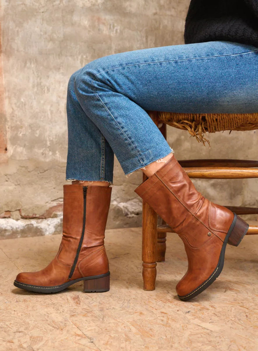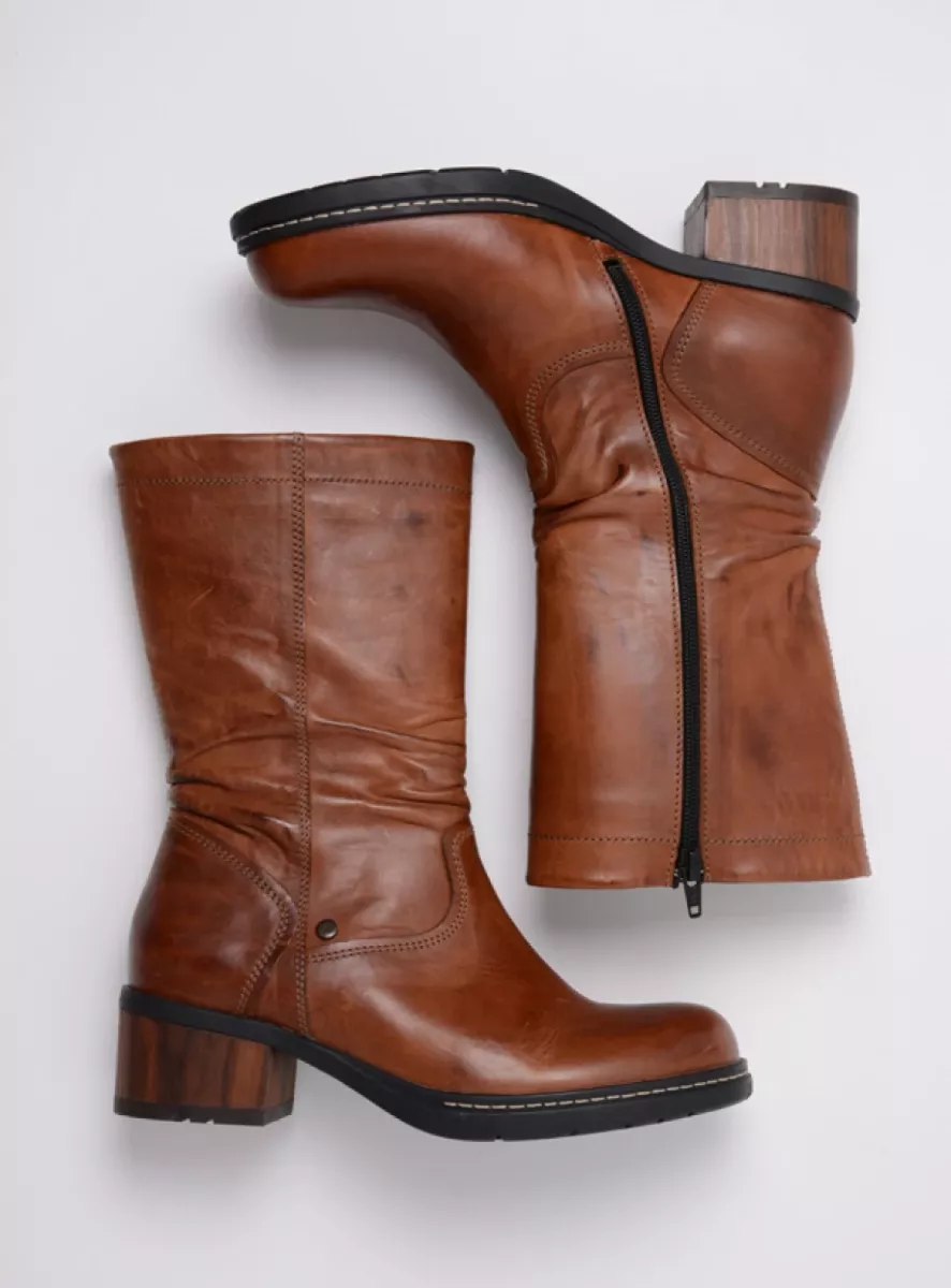 Wolky’s Edmonton WR is a mid-calf waterproof biker boot with a wooden heel and a zipper on the side of the boot, which makes it easy to get in and out. The boot is ideal for cold winter weather and thanks to the unique sole, it feels like you’re walking on air. The Edmonton has a special layer of foam in the sole which provides extra comfort, and the removable leather footbed sits on top of that. Want to use your custom insoles? No problem! Just place them on top of the foam layer and achieve even more comfort.