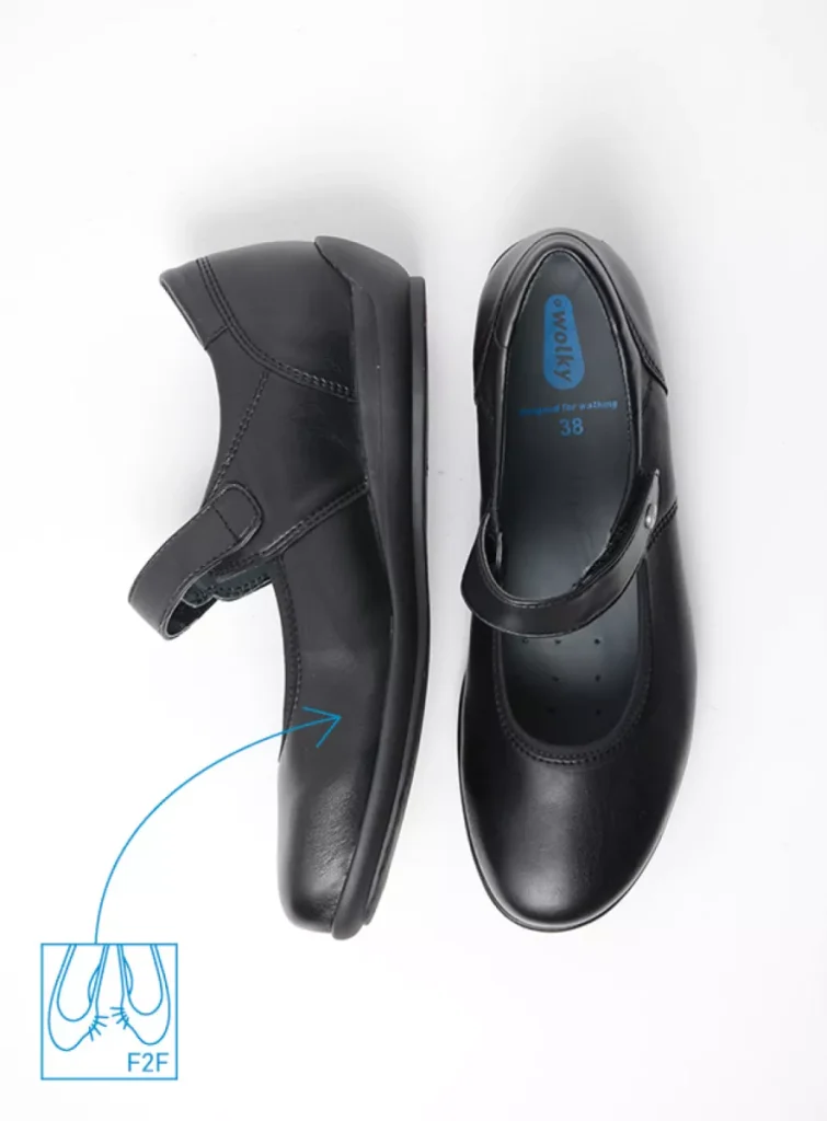 Wearing the Noble F2F Mary Jane will really make your day! The shoe has a flexible rubber sole, a leather inner lining and a removable footbed. What makes this shoe unique is that it is a F2F (Fit 2 Feet) model. Fit 2 Feet shoe molds to your feet without changing the outer appearance. They even have a special cutout for people with hallux valgus (bunions), ensuring the shoe stretches where you need it, whilst retaining its shape and sturdiness in all other areas!