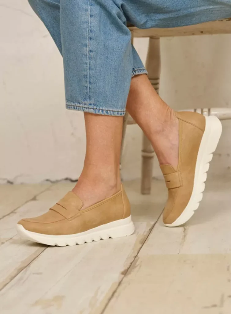 It’s neither a sneaker nor a loafer. It’s a snoafer! Wolky’s Snoafer F2F features the best of both worlds: the looks of a loafer with the support, cushioning and comfort of a sneaker. What’s more, the Snoafer F2F features Wolky’s patented Fit2Feet system. This allows the shoe to stretch around troublesome and painful lumps and bunions at the base of the big toe. The sole is made of lightweight, cushioning EVA, which helps prevent foot fatigue. The anatomically shaped footbed is removable – ideal for women with their own insoles. The elasticated collar ensures the Snoafer F2F fits perfectly around your foot. Can you picture yourself walking in them?