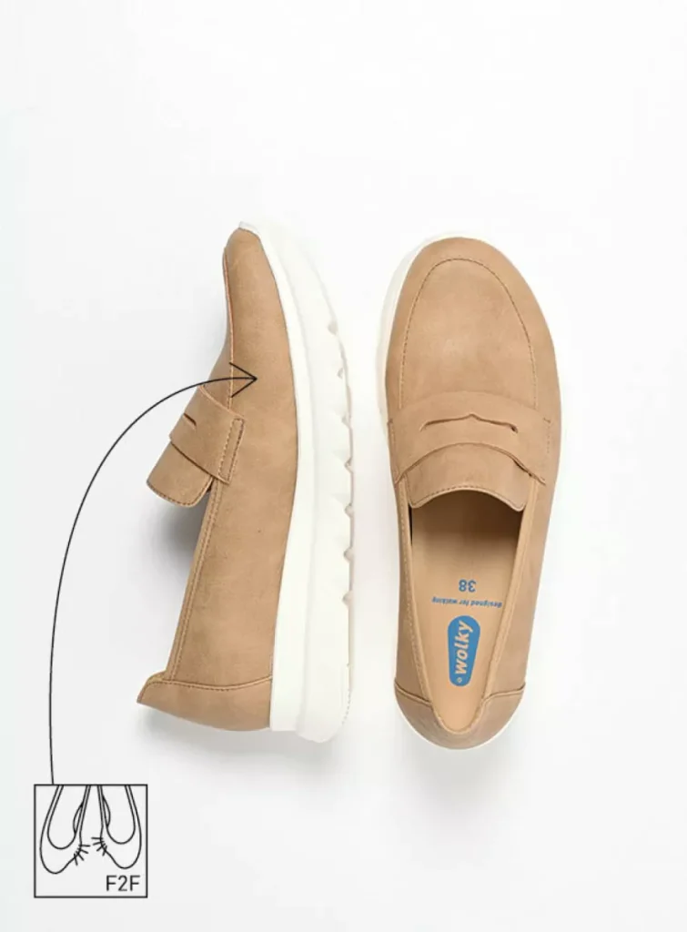 - Suitable for the average foot (width fitting M/W) and feet with bunions (hallux valgus). The Snoafer F2F features Wolky’s patented Fit2Feet system and also has an elasticated collar, allowing the shoe to easily adjust to the shape of your foot. It is also suitable for fuller feet and feet with a high instep.